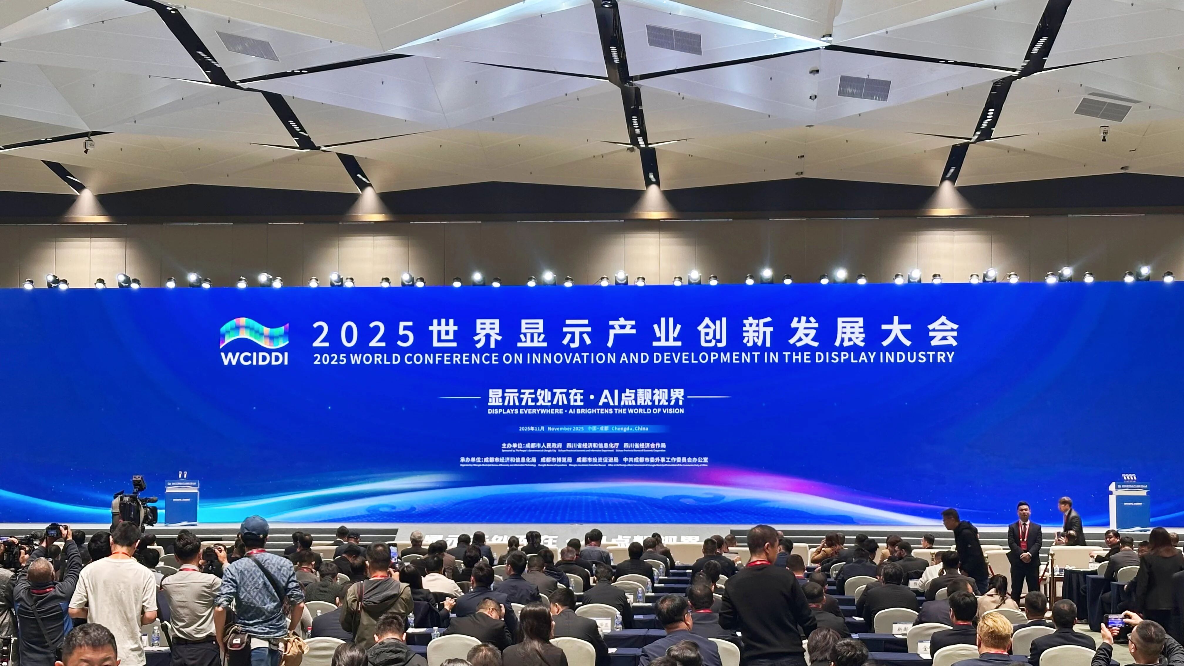 11月3-4日,2025世界显示产业创新发展大会在成都圆满召开。大会由成都市人民政府、四川省经信厅、省经济合作局联合主办,以“显示无处不在,AI点靓视界”为主题,聚焦AI与新型显示技术的深度融合,吸引全球48家头部企业参展,45项首发成果集中亮相。