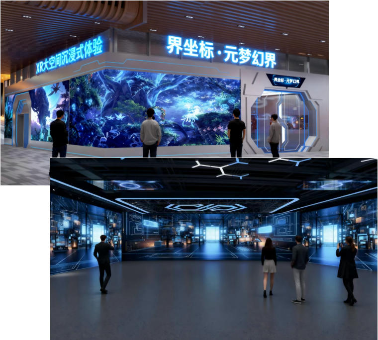 此外,基于“元梦幻界”与“元梦共生”两个沉浸式线下空间,展示了从内容平台到体验场景的整体输出能力。通过标准化空间结构与系统调度中台,已构建出可落地、可复制、可分发的国际化XR体验场馆解决方案,服务文旅、教育、品牌等多元消费场景。