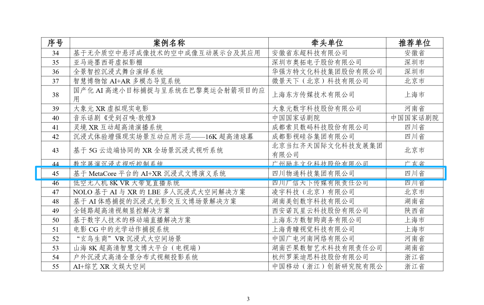 近日,工业和信息化部办公厅、文化和旅游部办公厅、国家广播电视总局办公厅、国家知识产权局办公室与中央广播电视总台办公厅联合发布了《2025年度视听系统典型案例名单》,四川物通科技集团有限公司凭借“基于 MetaCore 平台的 AI+XR 沉浸式文博演义系统”成功入选数字舞台和智慧文博视听系统类别典型案例,成为全国范围内受认可的优秀视听系统创新成果之一。