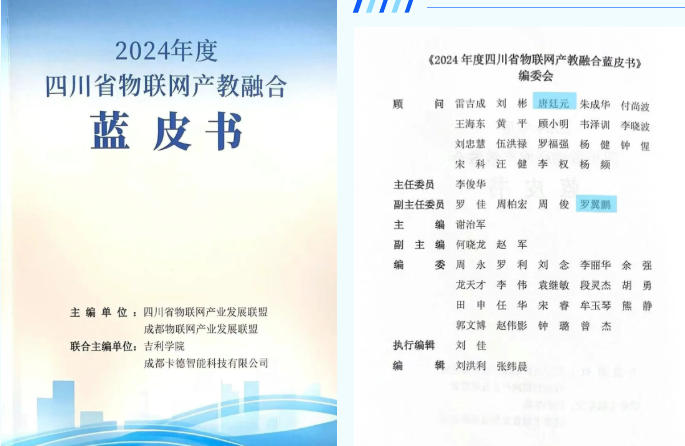 同时,公司创始人唐廷元先生受聘为四川省物联网产教融合专家顾问,CTO罗翼鹏先生担任副主任委员,深度参与《2024年度四川省物联网产教融合蓝皮书》的编撰工作。