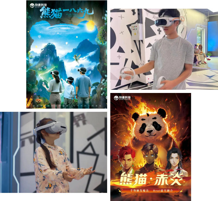 占地约700平方米,是物通科技打造的由人工智能与XR大空间定位驱动的沉浸式体验空间。场馆以大熊猫文化IP为核心,融合光学动捕、AI、XR、LBE大空间技术,开发了系列具有教育意义的原创内容。不仅为公众提供高品质文化消费体验,也为青少年科普研学、高校数字媒体专业实践提供了生动场景。