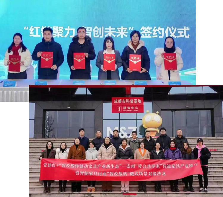 在本次会议的核心环节,四川物通科技集团以双重身份深度融入崇州家具产业的创新发展生态。罗翼鹏凭借其在工业数字化与系统集成领域的深厚积淀,受聘为崇州家具行业“智改数转”专家顾问,未来将为区域产业转型提供关键技术咨询与路径规划。同时,公司党支部委员会参与了“红链聚力·智创未来”党组织共建签约,与多家单位携手,旨在通过“党组织共建、阵地共用、服务共享、发展共赢”,赋能崇州智能家居产业高质量发展。